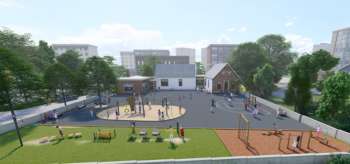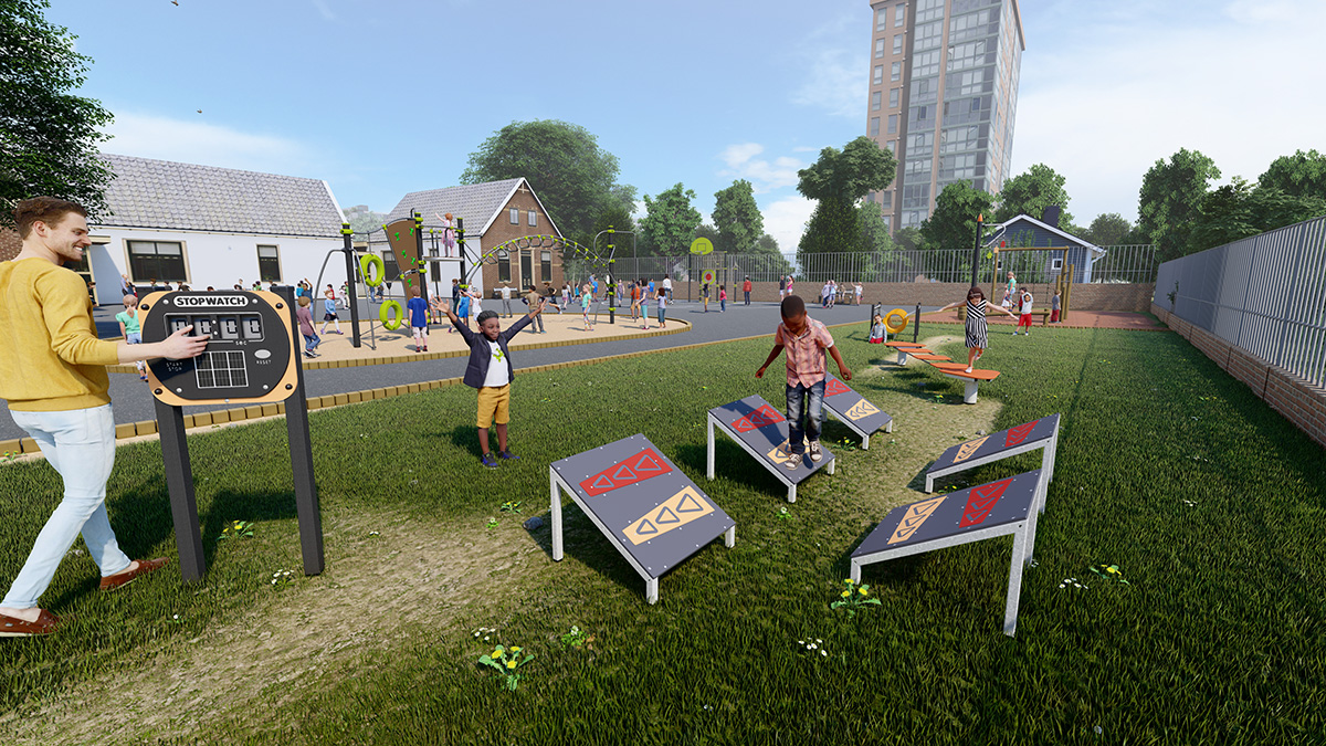 Lo spazio è organizzato attorno a una serie di aree di attività ludico-sportive organizzate per fasce d’età. Le zone sono ben identificate, ma sufficientemente vicine tra loro per favorire le interazioni, incoraggiare i momenti di condivisione familiare e per creare un vero e proprio punto di animazione urbana.
