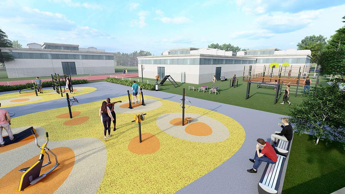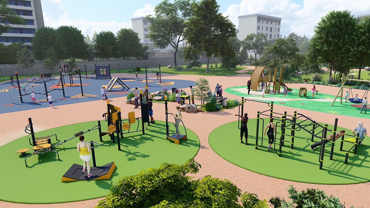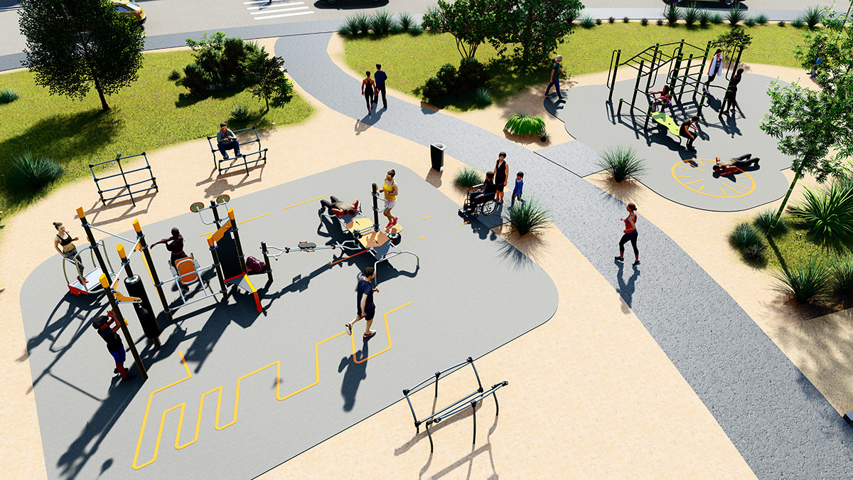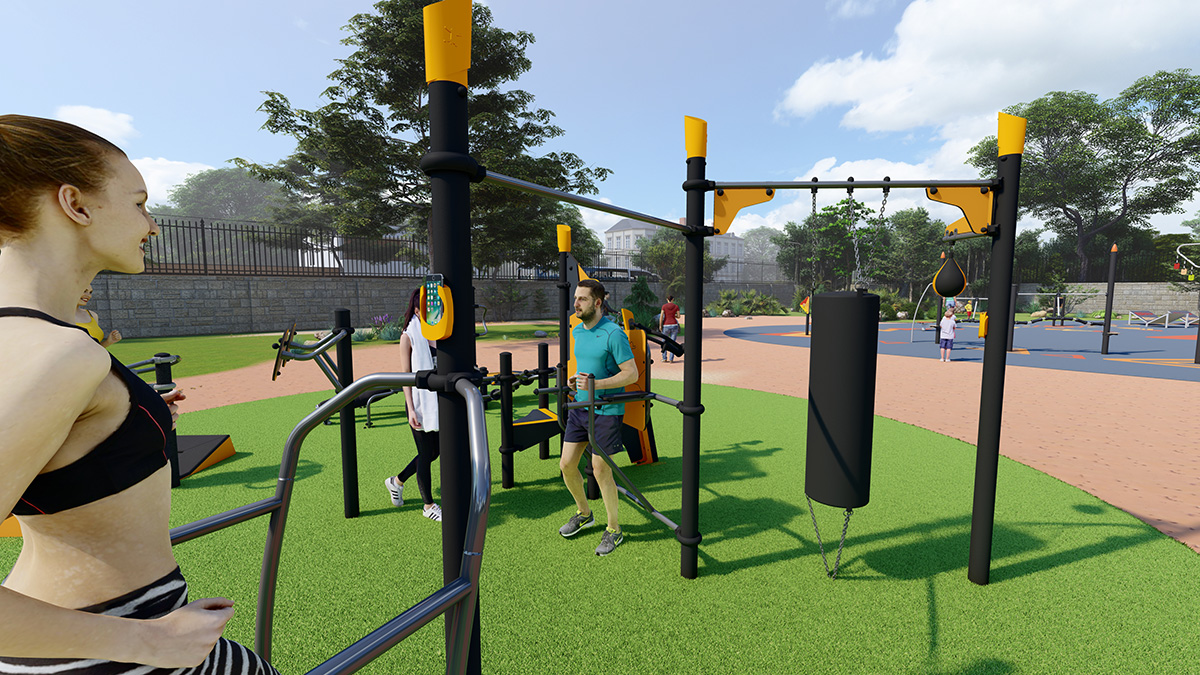 Lo spazio, composto da una struttura per lo Street Workout, attrezzature per il fitness e di arredo urbano, incoraggia l’aggregazione attorno ad attività ludico-sportive conviviali, miste e intergenerazionali.