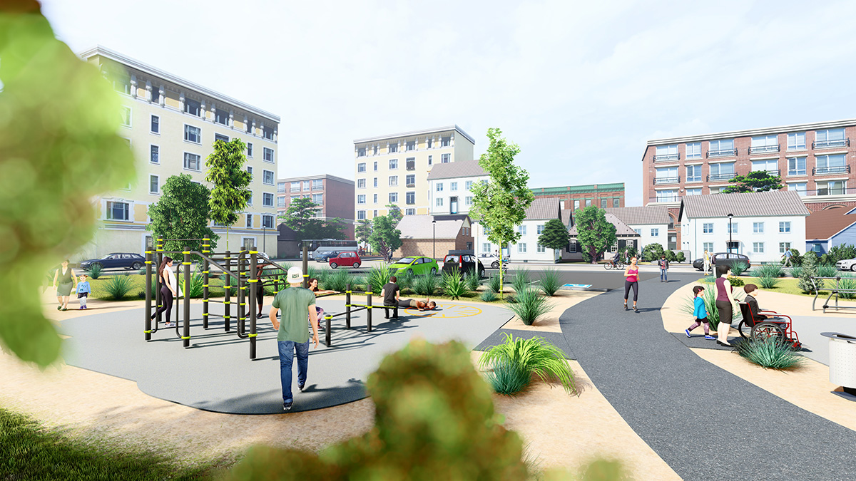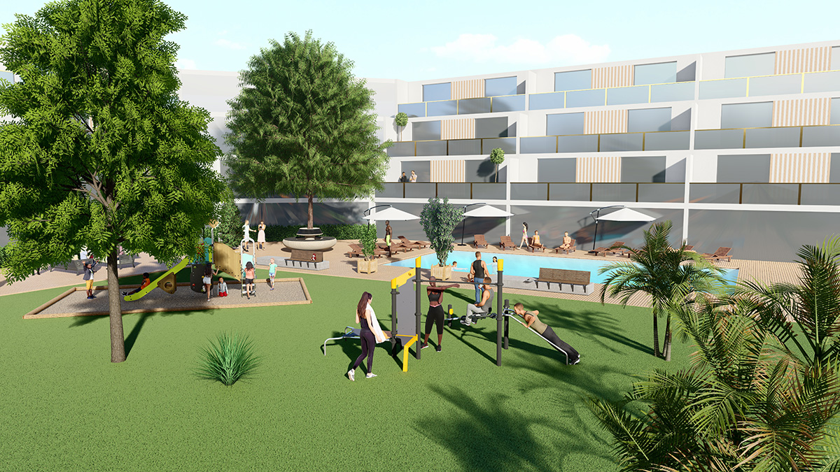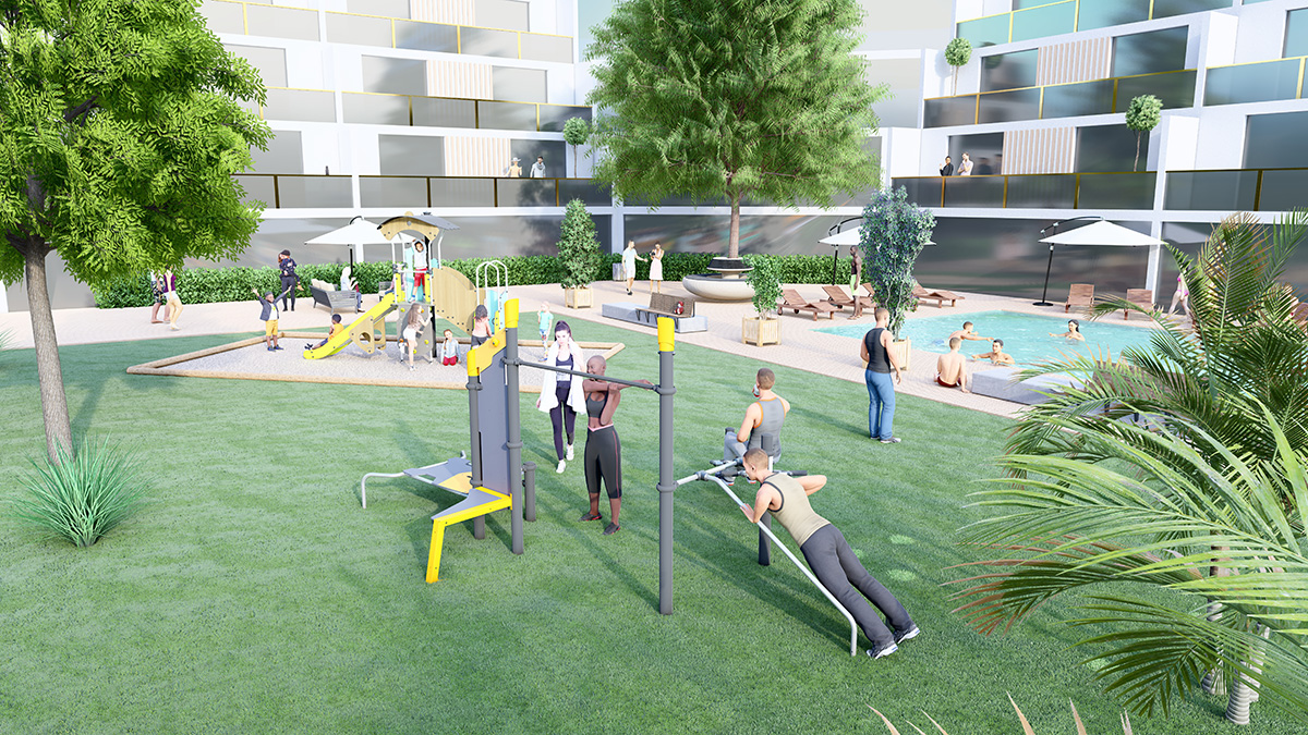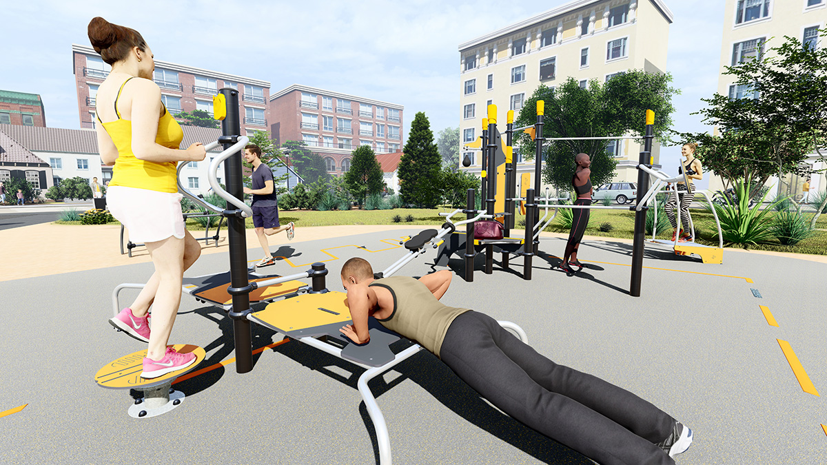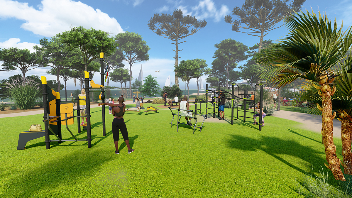 Lo spazio, composto da una struttura per lo Street Workout, attrezzature per il fitness e di arredo urbano, incoraggia l’aggregazione attorno ad attività ludico-sportive conviviali, miste e intergenerazionali.