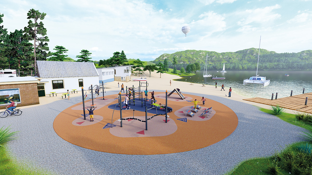 Lo spazio creato, ai margini dello specchio d’acqua, permette di diversificare le attività offerte dal sito e di coniugare sport e svago in uno spazio naturale.