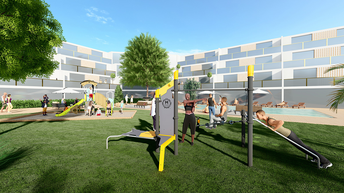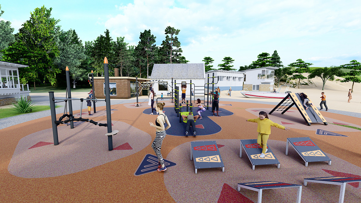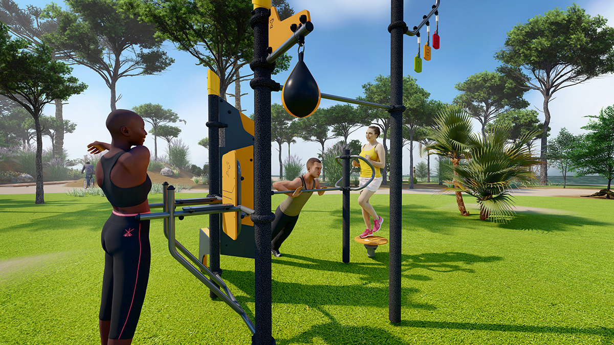 Le varie attrezzature ludico-sportive permettono di soddisfare tutta la famiglia: i bambini si divertono su un percorso di equilibrio, gli adulti fanno sport soft o più impegnativo su una stazione Fitness e una struttura per lo Street Workout.
