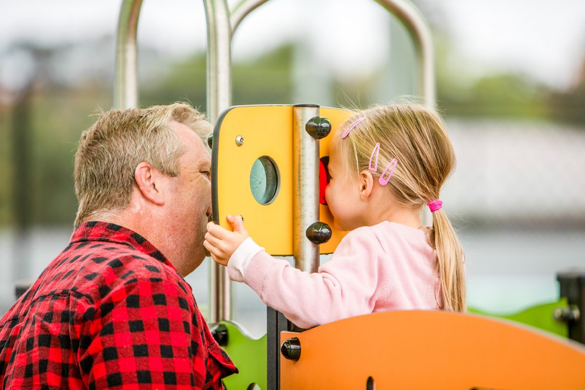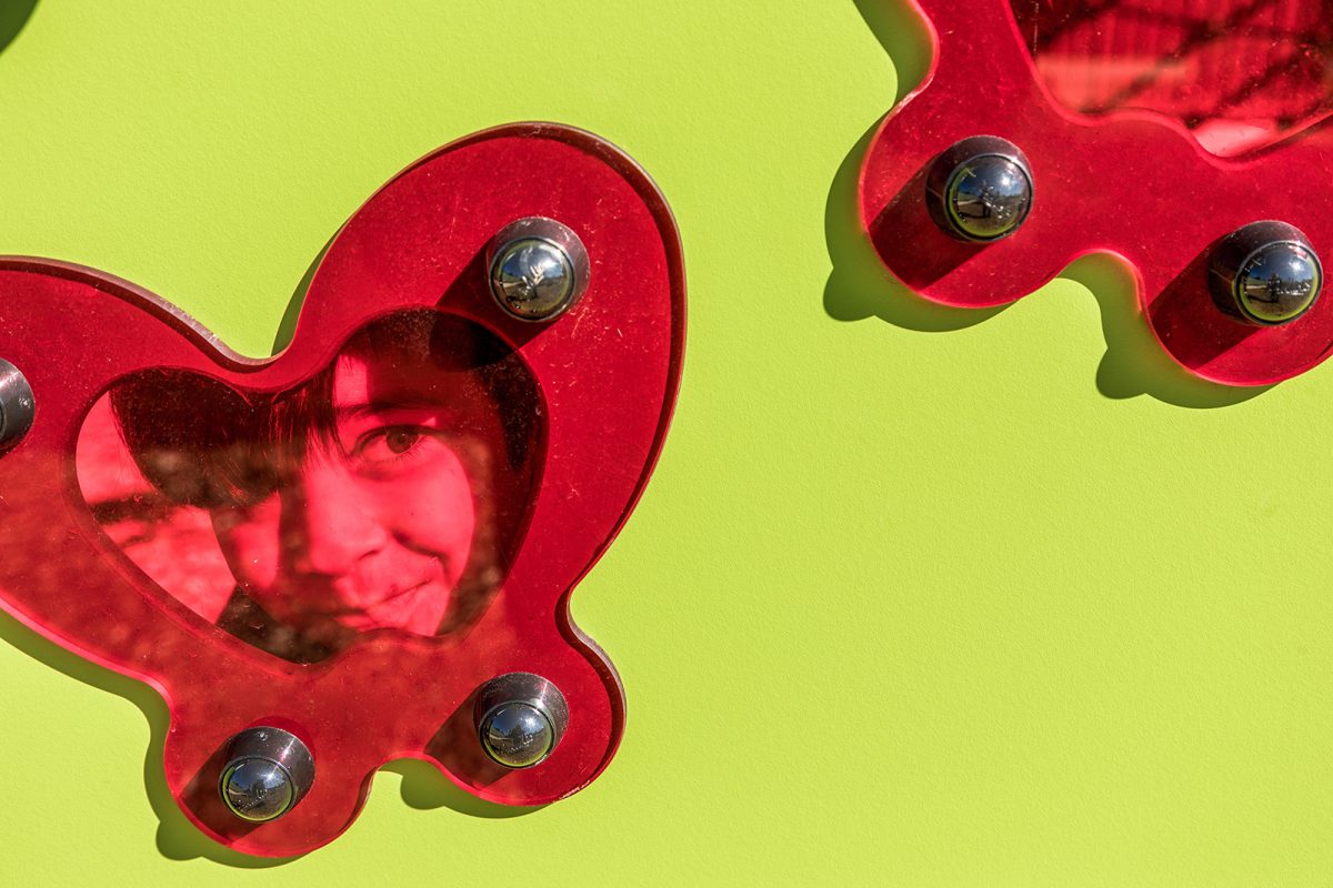 Nei parchi giochi, le attività ludiche incentrate sugli effetti visivi permettono al bambino di esplorarne le caratteristiche: colori, intensità, contrasto buio/luce, forme, distanze, illusioni ottiche…