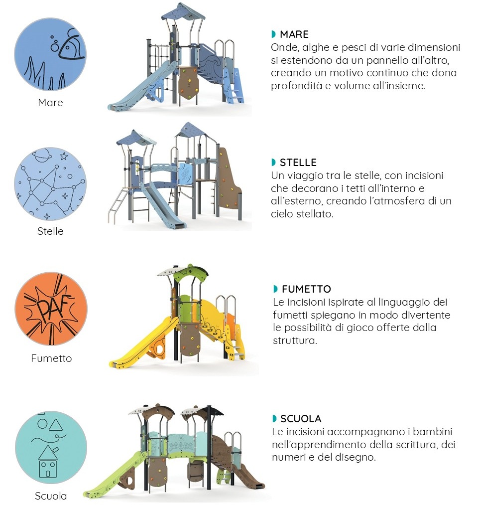 Condividi con noi le tue idee o esigenze per dare alla tua area gioco un aspetto unico e originale. La nostra creatività non conosce limiti!