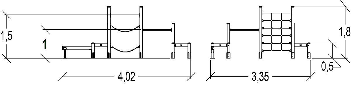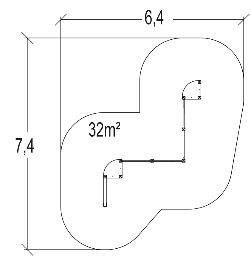 Le dimensioni del prodotto sono: 4,42 m di lunghezza, 3,42 m di larghezza, 1,80 m di altezza. L'altezza di caduta libera massima (HCL) è di 1,70 m.