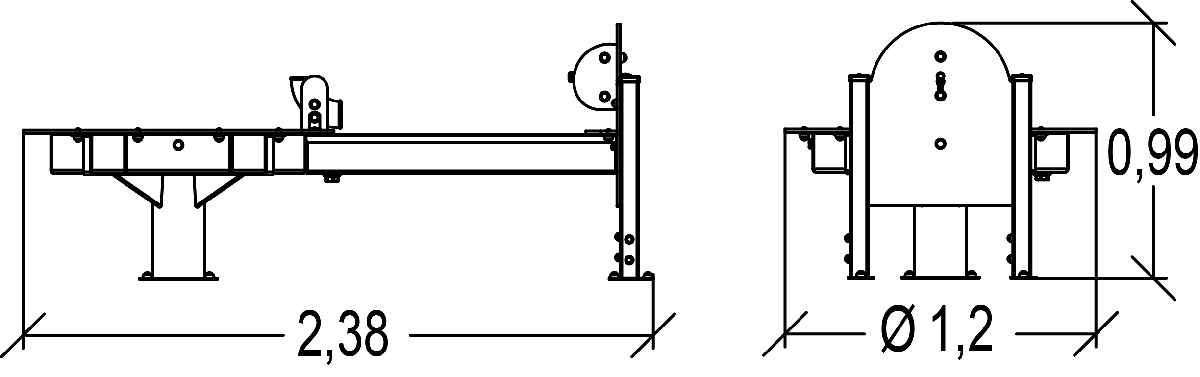 Le dimensioni del prodotto sono: 2,38 m di lunghezza, 1,20 m di larghezza, 0,99 m di altezza.
