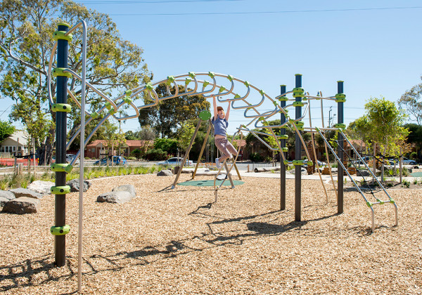 Attrezzatura multifunzione in metallo con attività di equilibrio palo scorrevole e attività di arrampicata - J2523-M