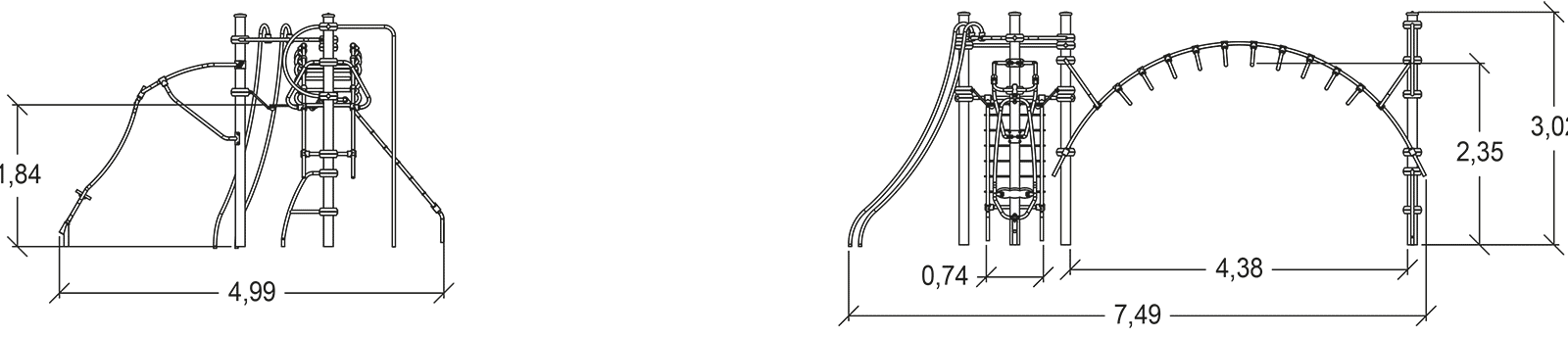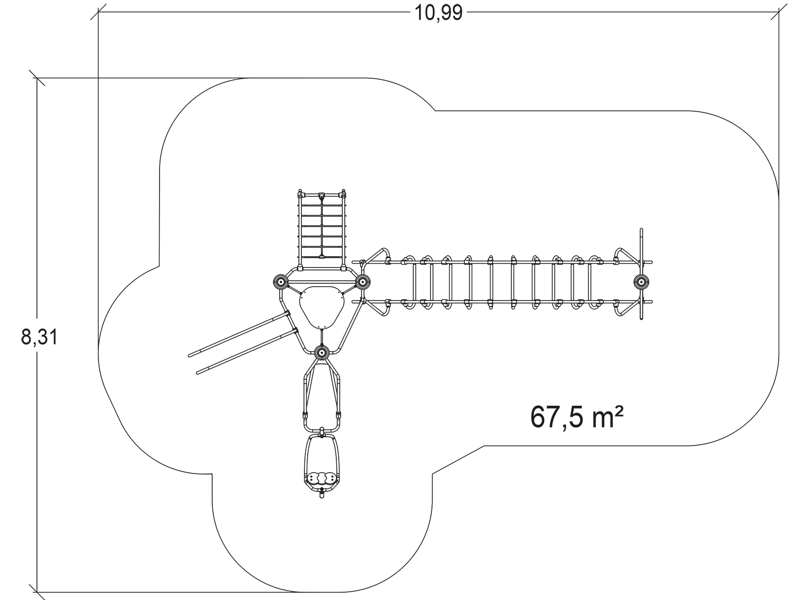 Le dimensioni del prodotto sono: 7,92 m di lunghezza, 4,99 m di larghezza, 3,00 m di altezza. L'altezza di caduta libera massima (HCL) è di 2,40 m.