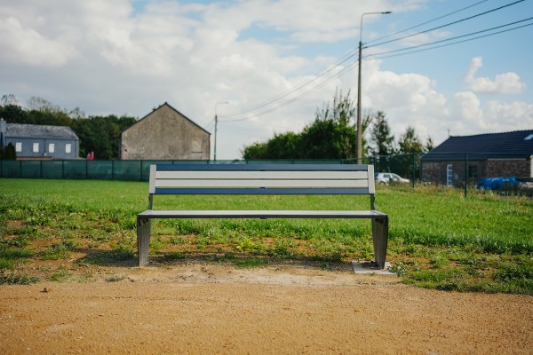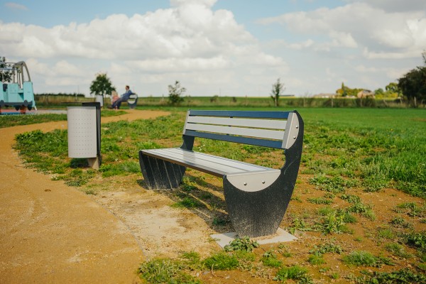 La seduta e lo schienale sono la combinazione di doghe in acciaio verniciato 50x25x2,5 mm e di doghe estruse per trazione (pultrusione) in poliestere (composito poliestere e... fibra di vetro) 58x25x3 mm, RAL 7004. Leggi di più
