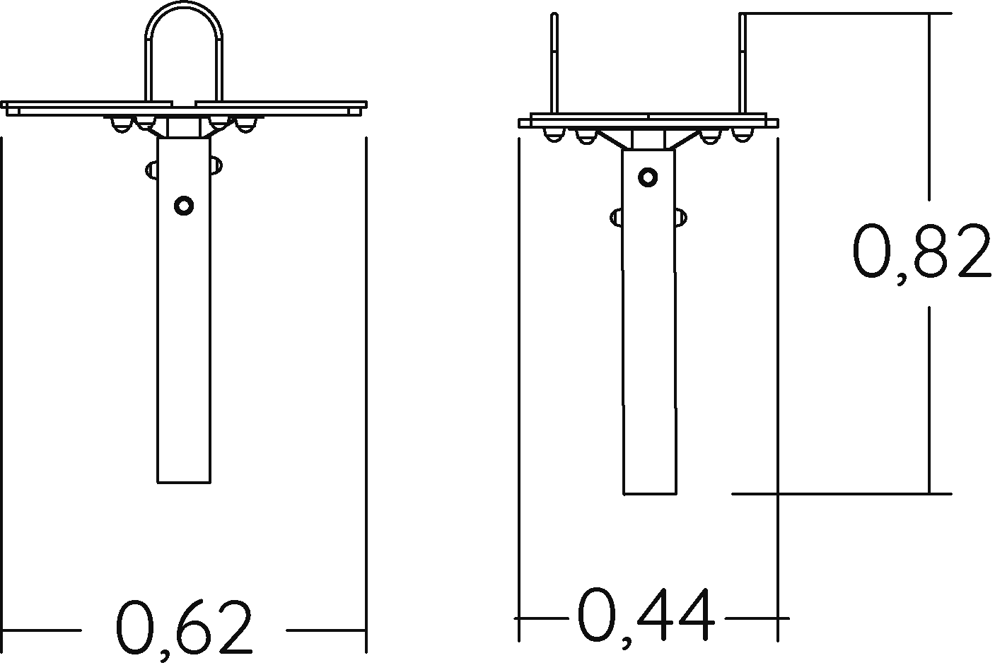 Il palo portante circolare, diametro 89 mm, è in acciaio galvanizzato.