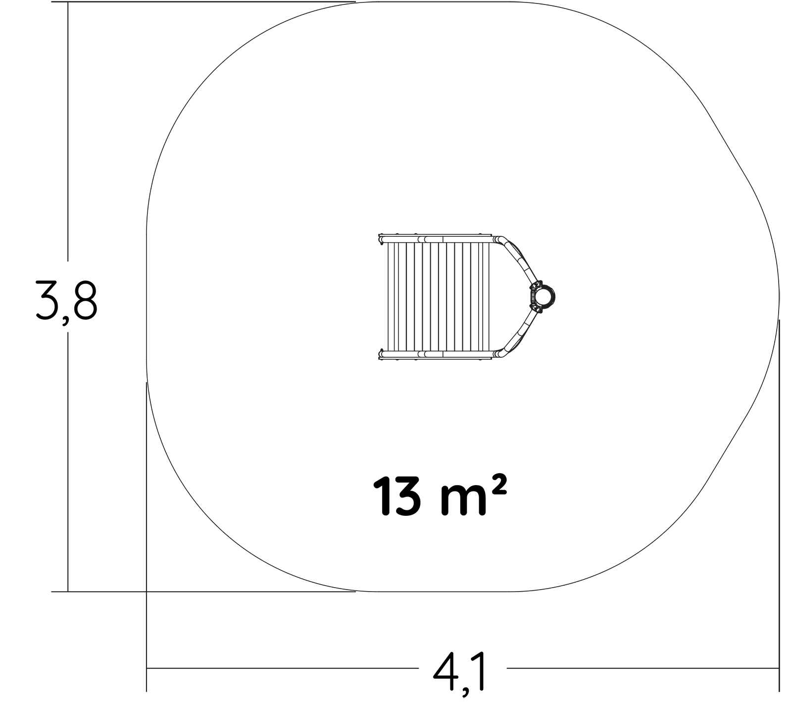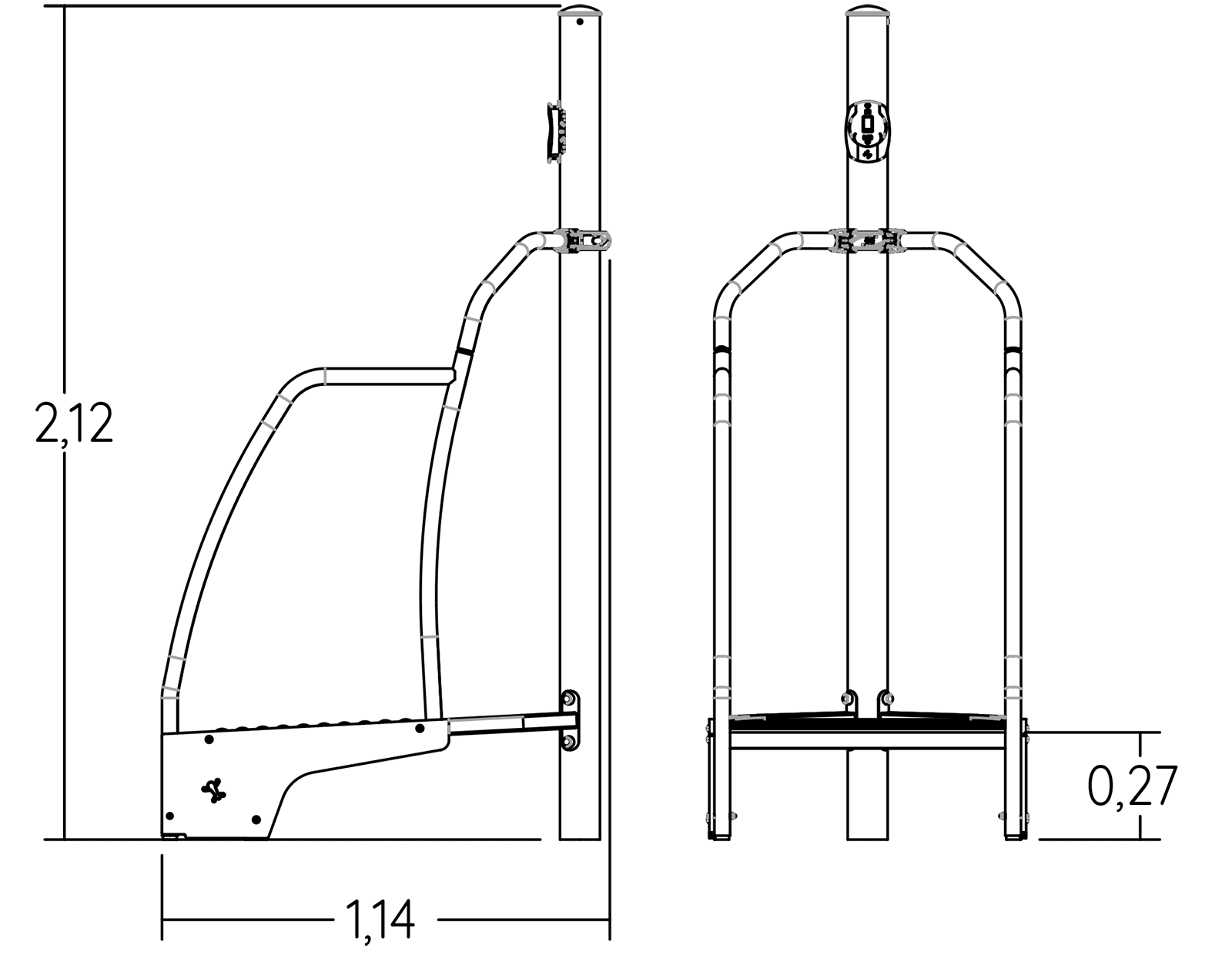 Le dimensioni del prodotto sono: 1,14 m di lunghezza, 0,81 m di larghezza, 2,12 m di altezza. L'altezza di caduta libera massima (HCL) è di 0,60 m.