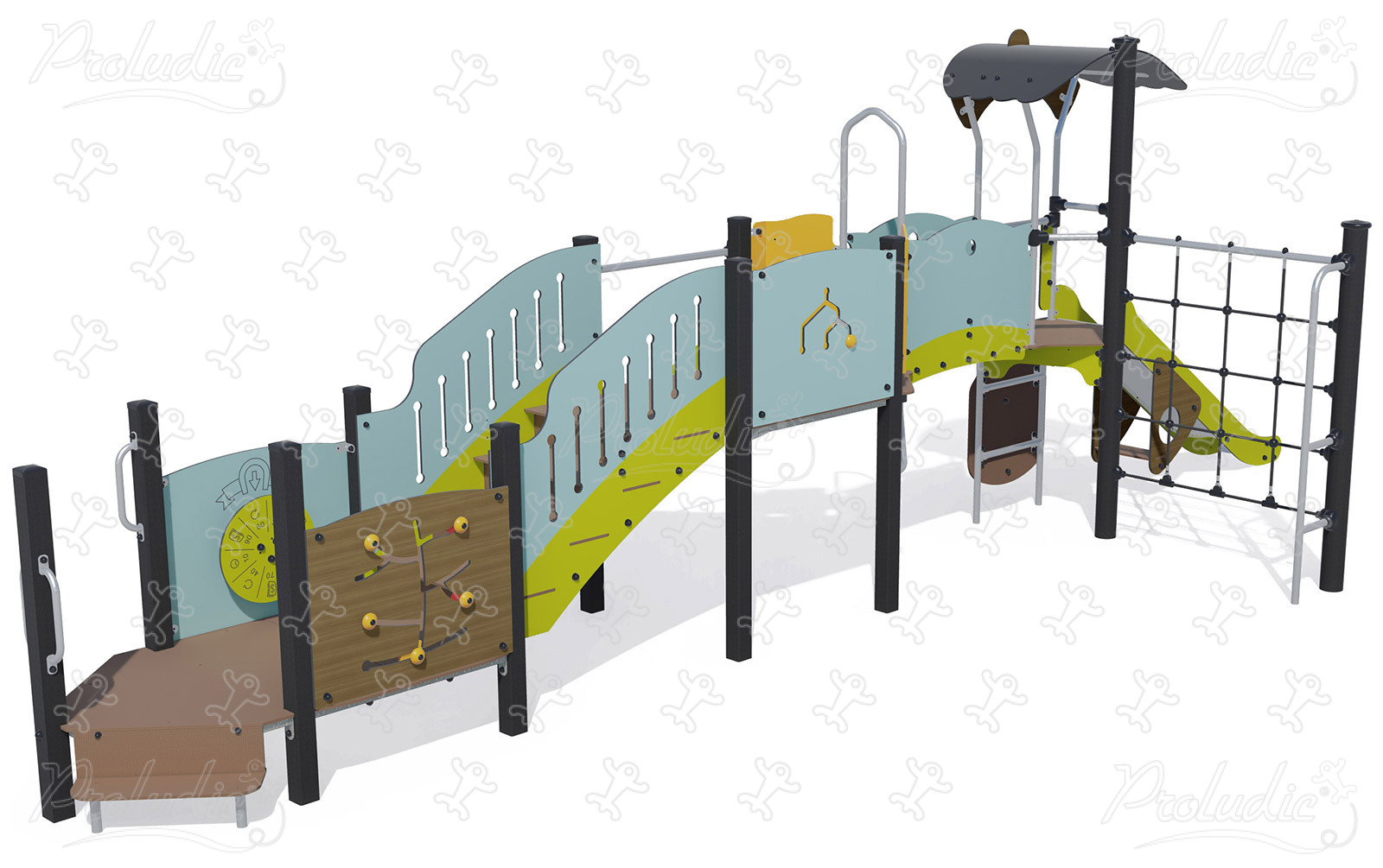 Attrezzatura multifunzione con scivoli e attività di arrampicata in colori pastello e legno 25 utenti - J38118-C