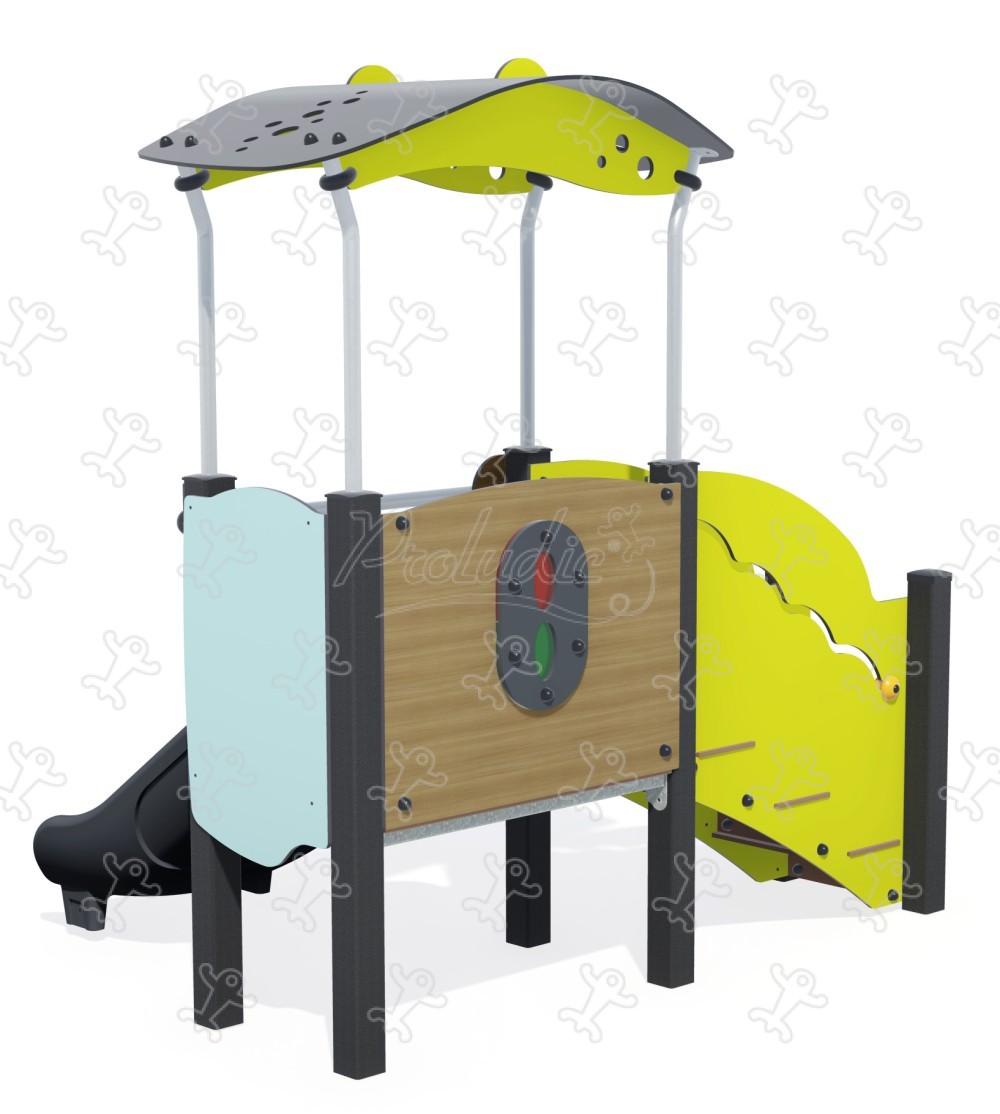 Attrezzatura multifunzione con scivolo e casetta rialzata nei colori pastello e legno - J38132-C®