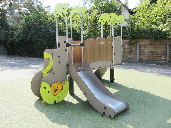 Attrezzatura multifunzione a tema foresta con attività di arrampicata e scivolo - J38502