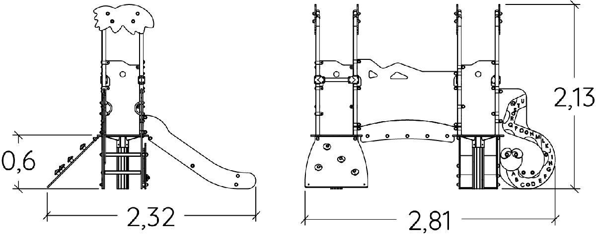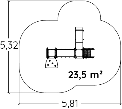 Le dimensioni del prodotto sono: 2,81 m di lunghezza, 2,32 m di larghezza, 2,13 m di altezza. L'altezza di caduta libera massima (HCL) è di 1,00 m.