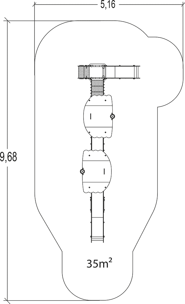 Le dimensioni del prodotto sono: 6,18 m di lunghezza, 2,16 m di larghezza, 2,94 m di altezza. L'altezza di caduta libera massima (HCL) è di 1,17 m.