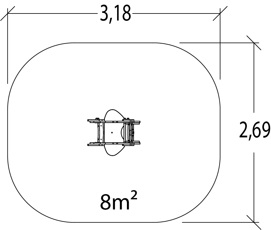 Le dimensioni del prodotto sono: 0,78 m di lunghezza, 0,69 m di larghezza, 0,87 m di altezza. L'altezza di caduta libera massima (HCL) è di 0,60 m.