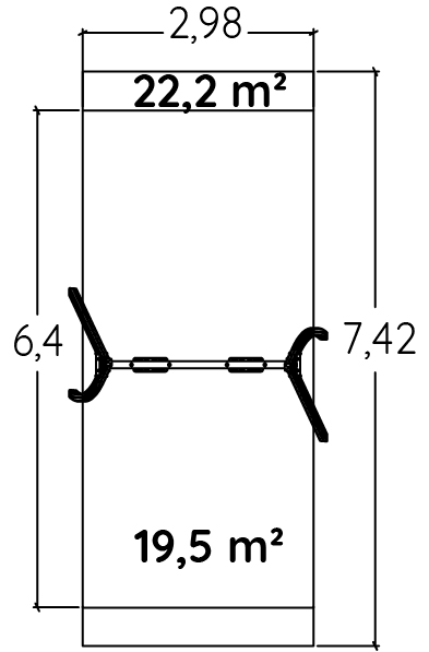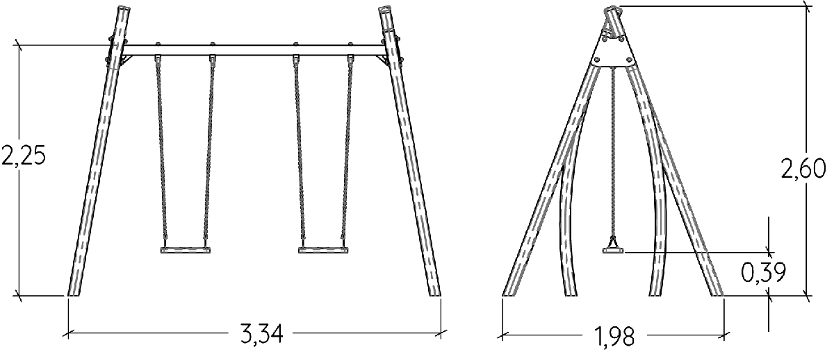 Le dimensioni del prodotto sono: 3,34 m di lunghezza, 1,98 m di larghezza, 2,60 m di altezza. L'altezza di caduta libera massima (HCL) è di 1,28 m.