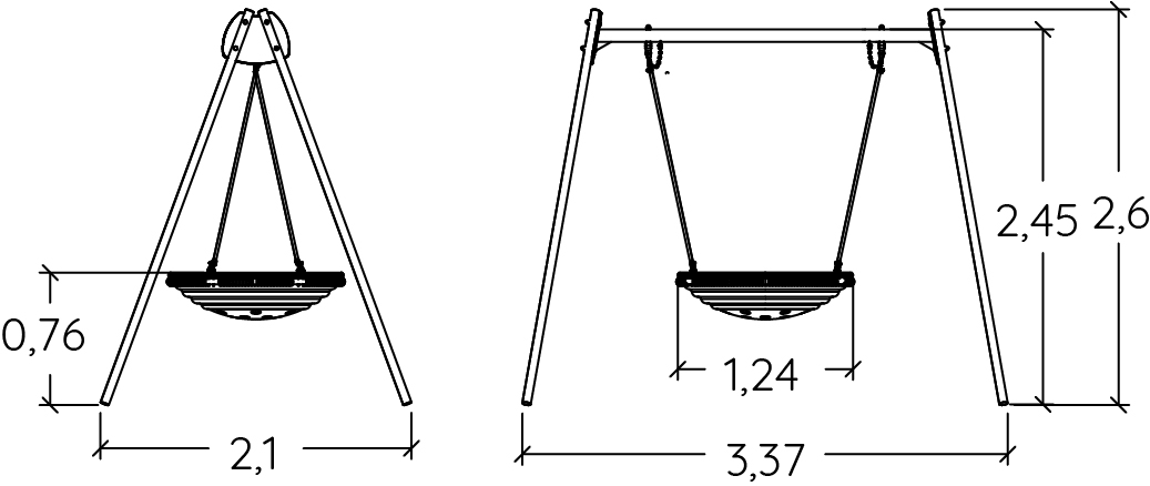 Altalena con sedile a baccello nero e pali angolari - J441