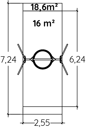 Le dimensioni del prodotto sono: 3,37 m di lunghezza, 2,10 m di larghezza, 2,60 m di altezza. L'altezza di caduta libera massima (HCL) è di 1,55 m.