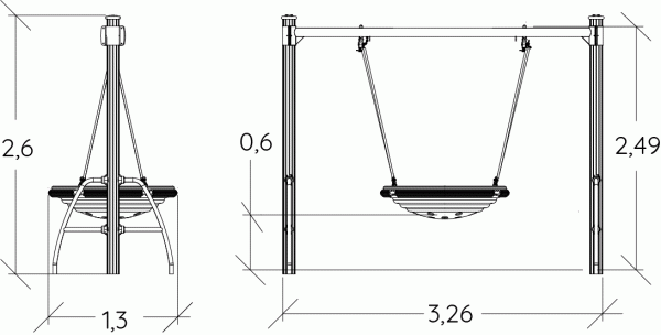 Le travi orizzontali delle altalene, con un diametro di 88,9 mm, sono in acciaio galvanizzato, non verniciato.