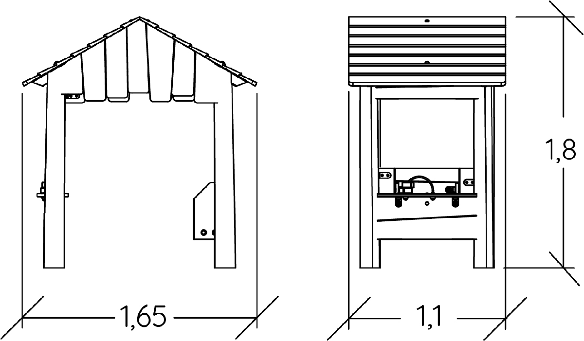 Dimensioni : 1,65 x 1,10 x 1,80 m