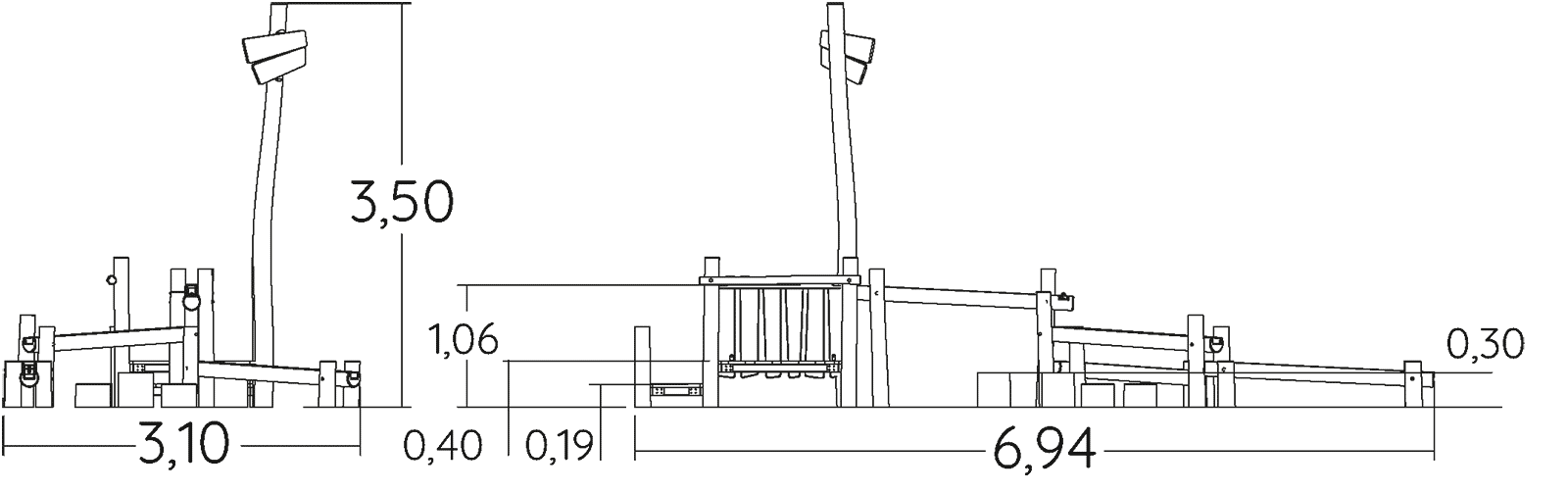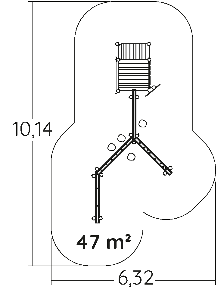Le dimensioni del prodotto sono: 6,88 m di lunghezza, 3,10 m di larghezza, 3,50 m di altezza. L'altezza di caduta libera massima (HCL) è di 0,60 m.