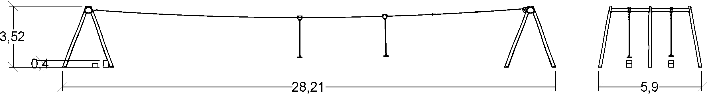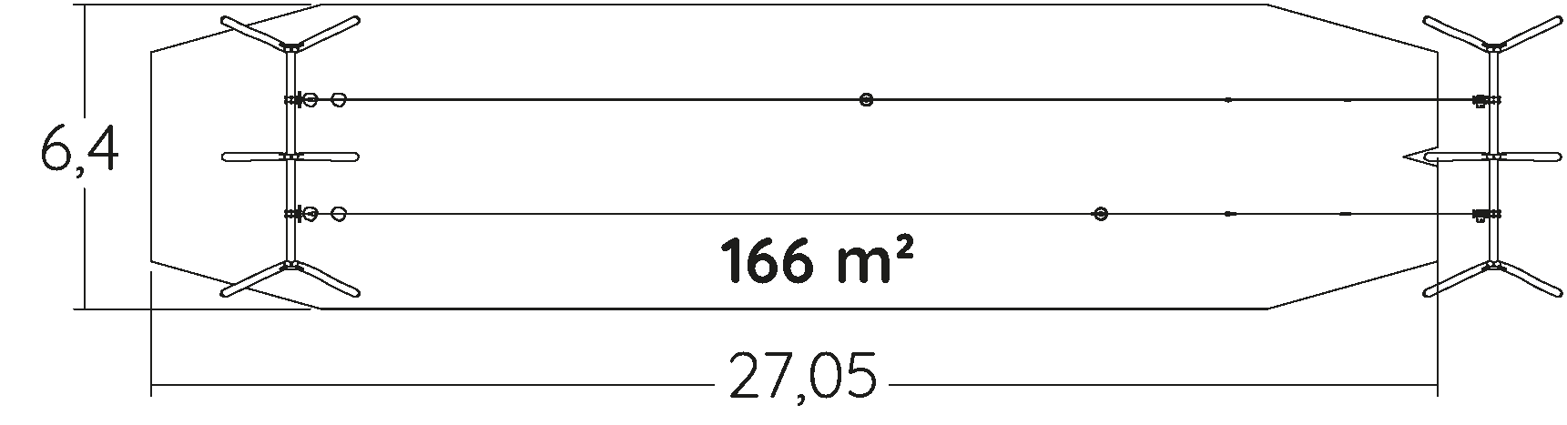Le dimensioni del prodotto sono: 28,21 m di lunghezza, 5,90 m di larghezza, 3,53 m di altezza. L'altezza di caduta libera massima (HCL) è di 1,00 m.