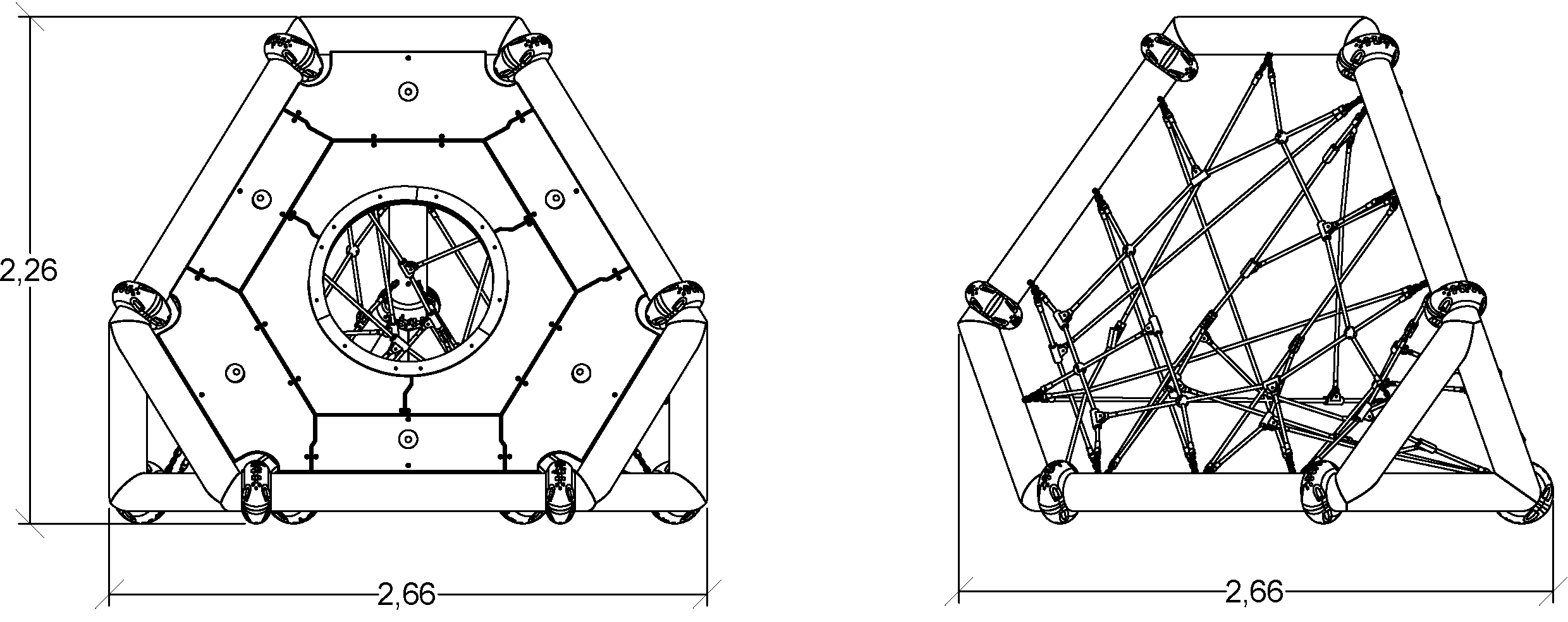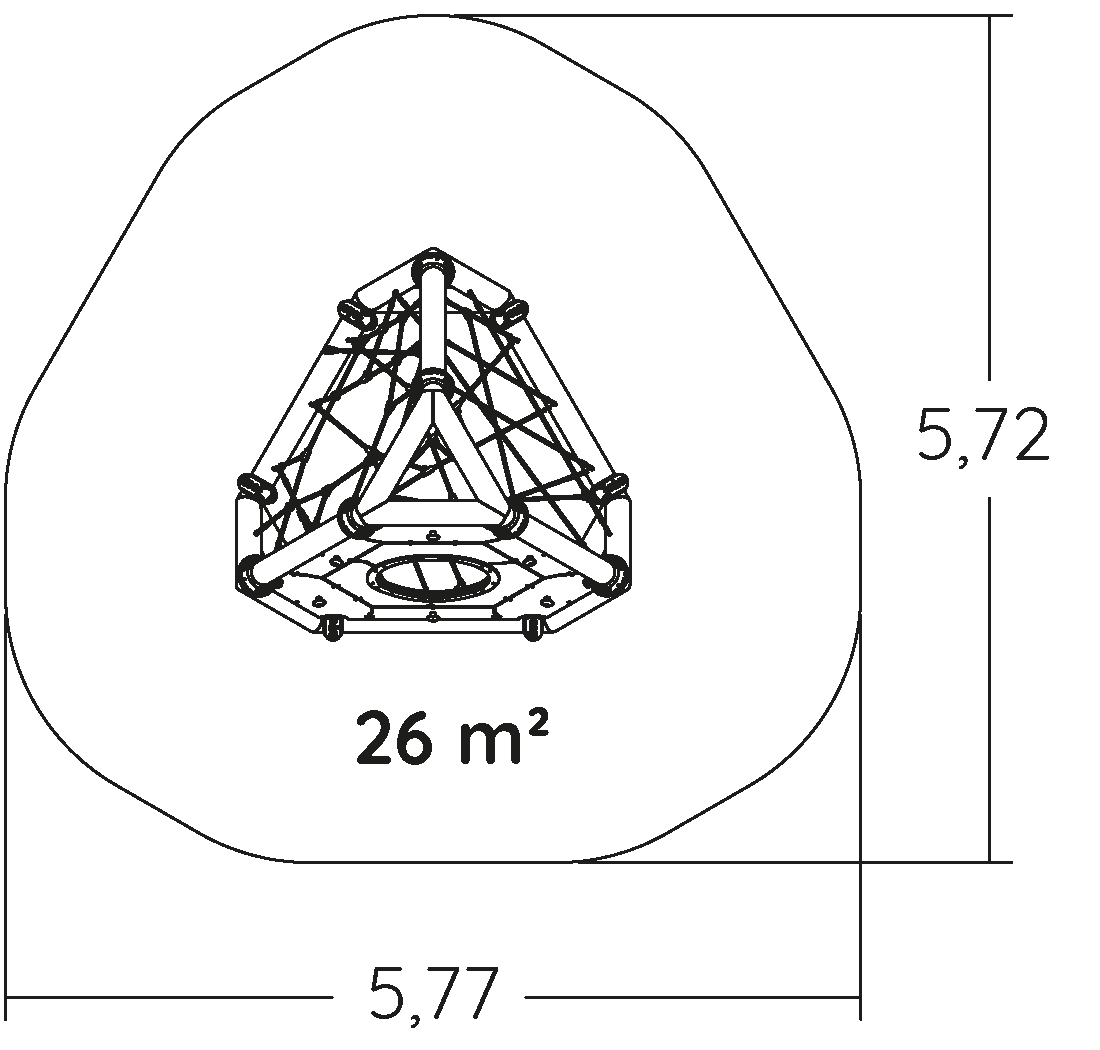 Le dimensioni del prodotto sono: 2,66 m di lunghezza, 2,66 m di larghezza, 2,26 m di altezza. L'altezza di caduta libera massima (HCL) è di 2,00 m.
