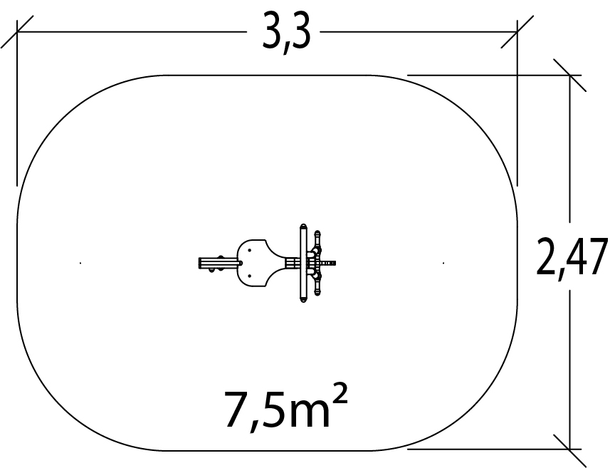 Le dimensioni del prodotto sono: 0,90 m di lunghezza, 0,53 m di larghezza, 0,84 m di altezza. L'altezza di caduta libera massima (HCL) è di 0,60 m.