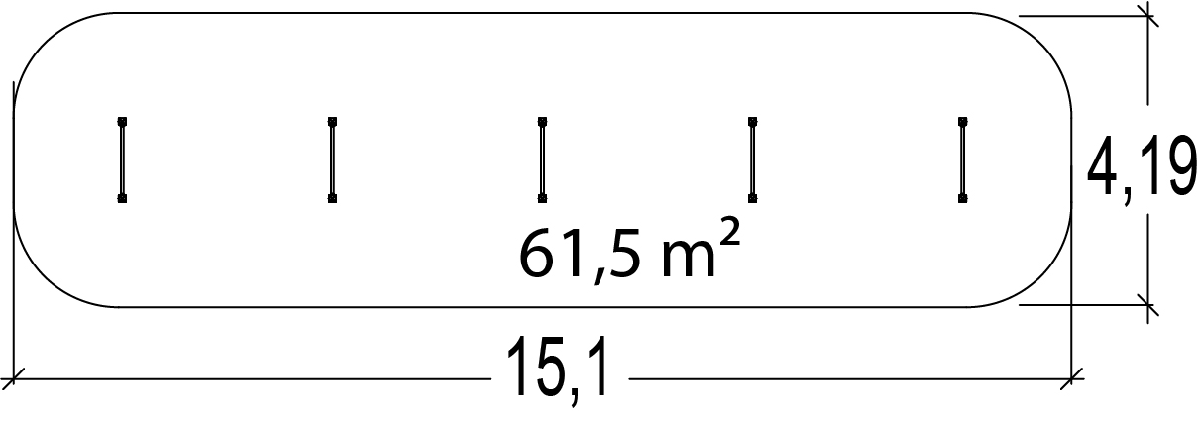 Le dimensioni del prodotto sono: 12,10 m di lunghezza, 1,20 m di larghezza, 1,01 m di altezza. L'altezza di caduta libera massima (HCL) è di 0,80 m.